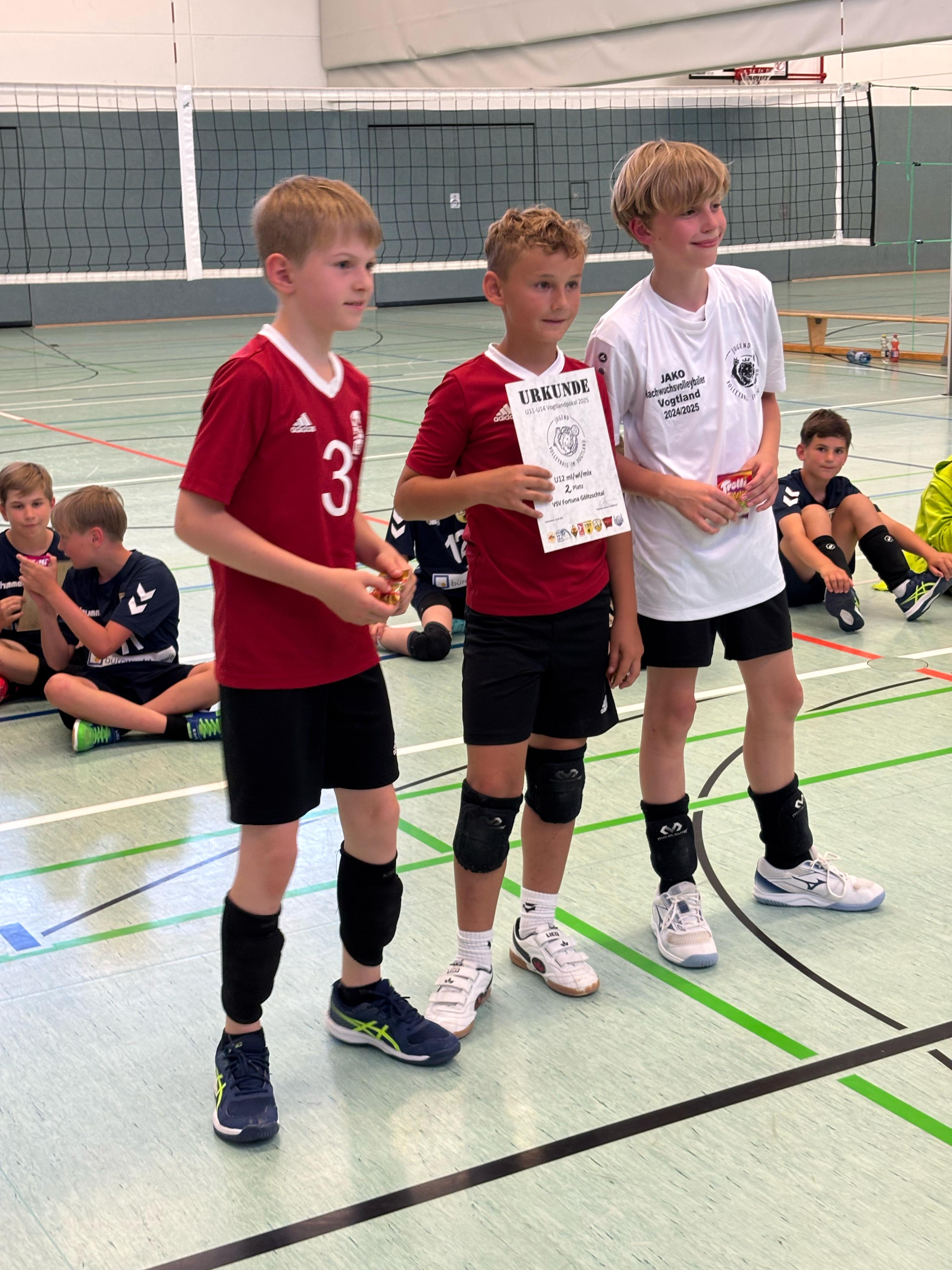 U12 (10 Teilnehmer): Pokalsieger VSV Oelsnitz III, 2. Platz VSV Fortuna Göltzschtal, 3. Platz VSV Oelsnitz II - Nachwuchsvolleyballerin: Marie Gehmlich (VSV Oelsnitz), Nachwuchsvolleyballer: Tim Glöckner (VSV Fortuna Göltzschtal)