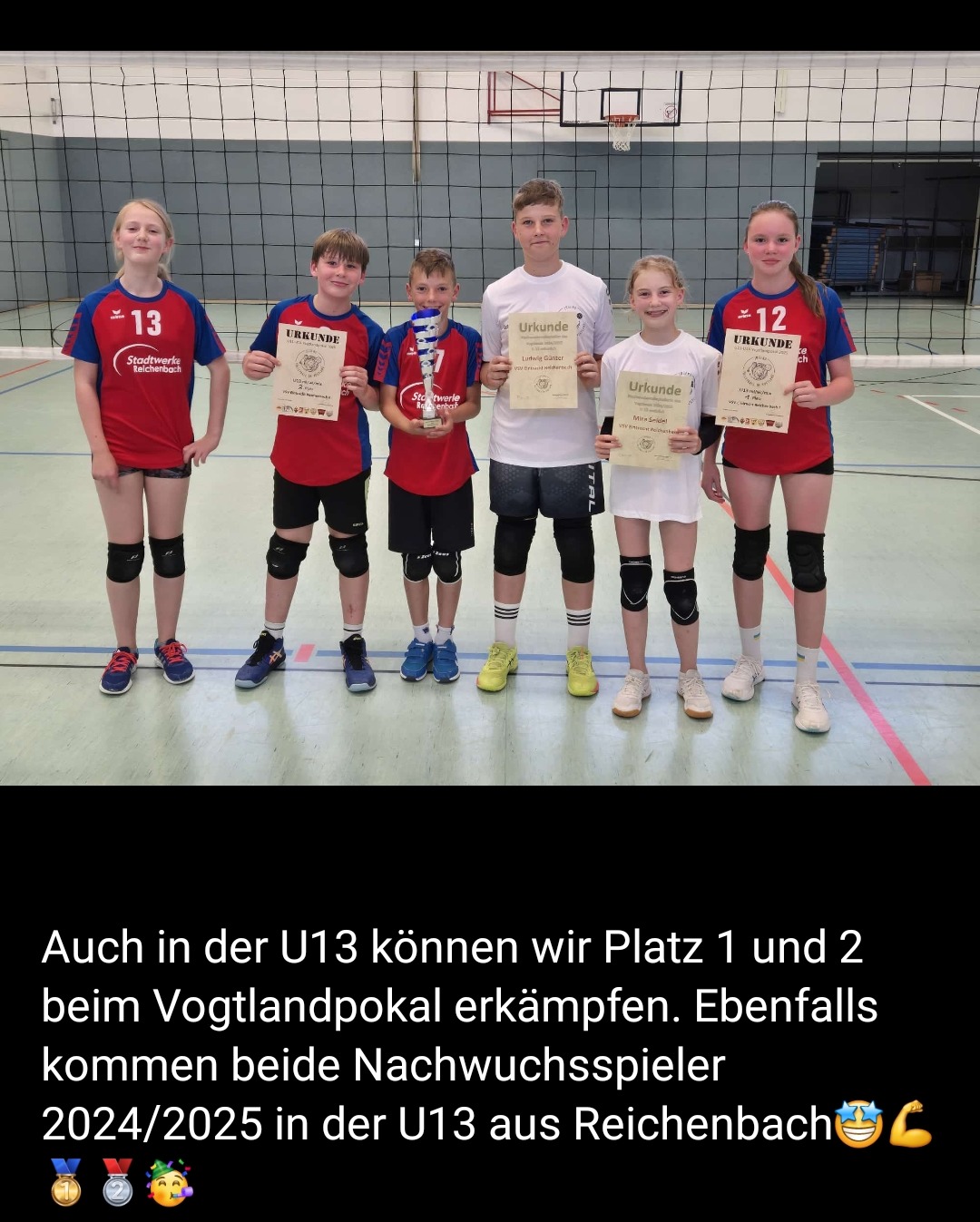 U13 (8 Teilnehmer): Pokalsieger VSV Eintracht Reichenbach I, 2. Platz VSV Eintracht Reichenbach II, 3. Platz VSV Oelsnitz II - Nachwuchsvolleyballerin: Mira Seidel (VSV Eintracht Reichenbach), Nachwuchsvolleyballer Ludwig Günter (VSV Eintracht Reichenbach)